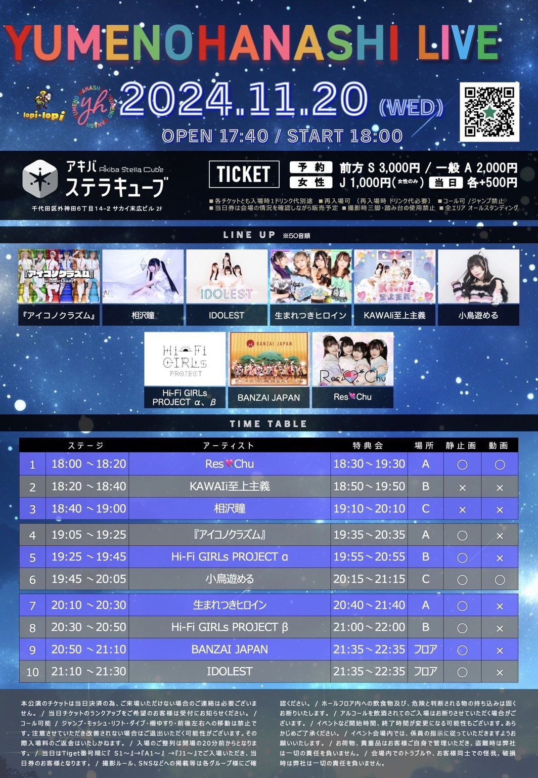 出演:『アイコノクラズム』/相沢瞳/IDOLEST/生まれつきヒロイン/KAWAIi至上主義/小鳥遊める/Hi-Fi GIRLs PROJECT α/Hi-Fi GIRLs PROJECT β/BANZAI JAPAN/Res