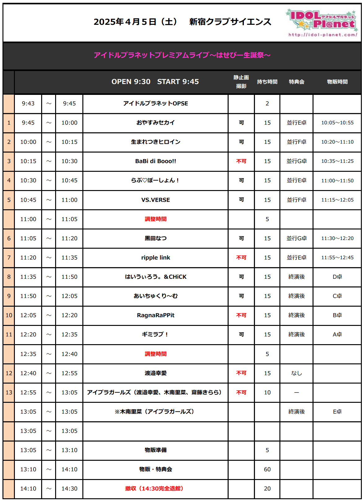 予約受付メールアドレス ⇒ idolplanet.live@gmail.com