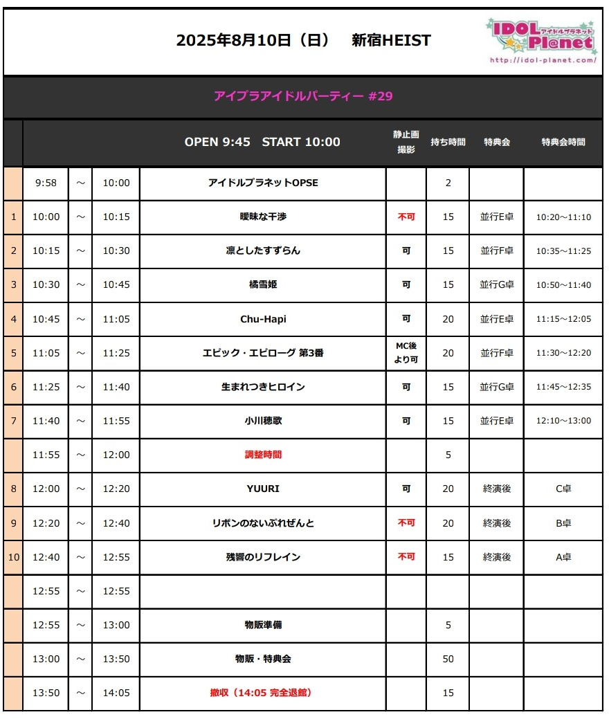 ■件名/8月10日 アイプラアイドルパーティー予約